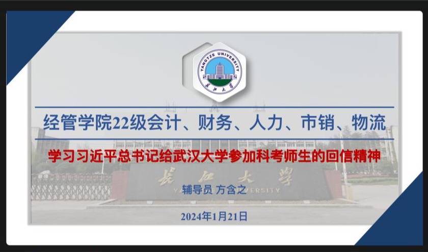 会计本科生党支部在文科楼505集中学习“习近平总书记给武汉大学参加中国南北极科学考察队师生代表的回信”,支部书记桂凯丽同志领学了习近平总书记给武汉大学参加中国南北极科学考察队的师生代表的重要回信精神。在回信中,党员同志们看到了习近平总书记对武汉大学参加中国南北极科学考察队师生代表的高度赞赏和殷殷期待。这些勇于担当的青年心怀“国之大者”、勇闯“无人之境”,为新时代大学生练就过硬本领,勇攀科学高峰树立起振奋人心的精神标杆。