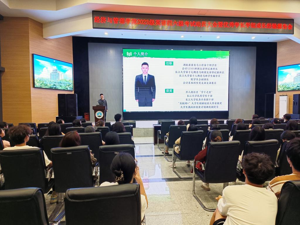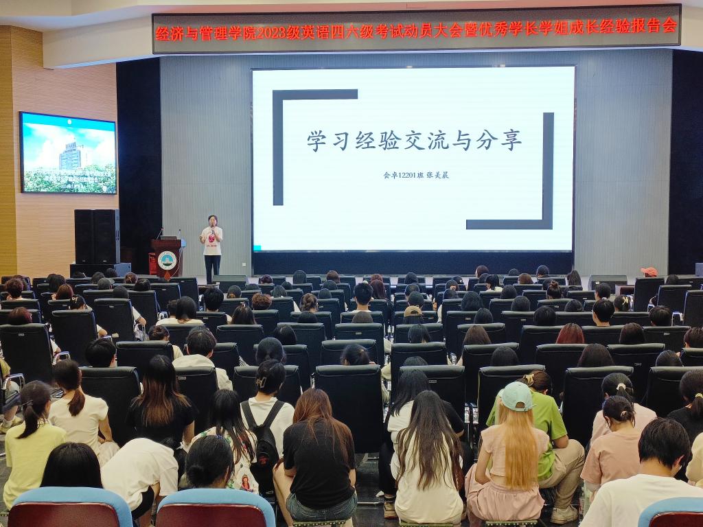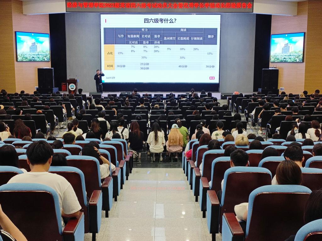 2024年上半年全国大学英语四、六级考试将于6月15日进行。为进一步做好考前辅导,帮助学生调整好备考状态,鼓足考试信心,5月13日晚上7:00,350vip浦京集团官网在西校区农科大楼1058报告厅举行2023级本科生英语四六级考试动员大会暨优秀学长学姐成长经验报告会。活动由2023级辅导员李镇主持,学院党委副书记平先锋、教师代表及全体学生参加。