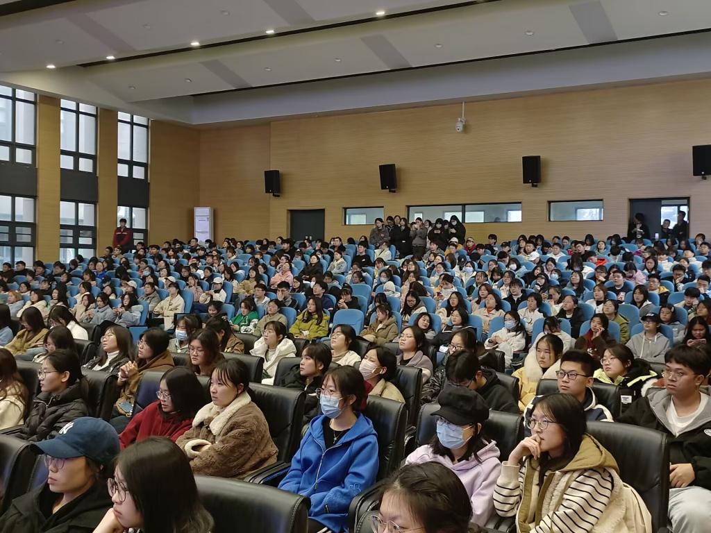 大会伊始,叶星老师宣读表彰文件,对2022至2023学年上学期的优秀班集体及个人进行了表彰。随后“学习之星”尹东昊学长在会上作交流发言,他从“归零”、“扎根”、“沉淀”、“突破”五个方面向同学们阐述了他的成长之路,并重点强调了四级考试对于大学生的重要性,同时分享了自己对于四级备考的一些方法技巧。