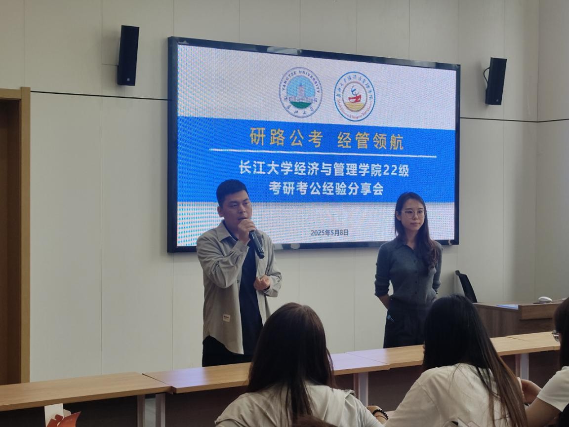 (通讯员:王璐佳)为发挥朋辈示范引领作用,助力学子明确职业方向、掌握备考技巧,5月8日下午,350vip浦京集团官网在东校区四食堂三楼宏川厅举办“研路公考 经管领航”考公考研朋辈经验分享会。活动由学院22级辅导员郭俊、方含之老师主持,特邀21级优秀考录代表肖扬学长和考研优秀代表陈晋晋学姐分享经验,并联动招商银行信用卡中心武汉分中心、东莞证券襄阳营业部开展校园招聘宣讲,吸引近百名学子到场参与。