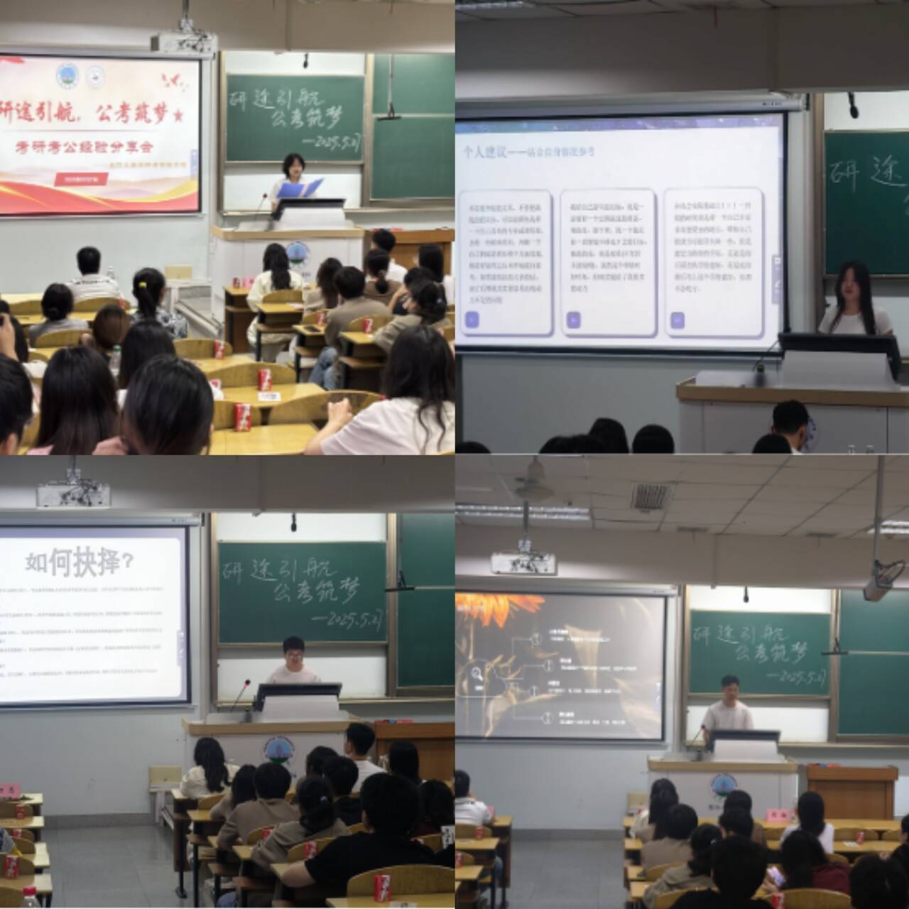 (通讯员 文/杜仕奇 梁壮然 图/姚子依 姜剑秋)为充分发挥优秀学子榜样力量,帮助大二年级学生明晰未来发展方向,5月27日晚,350vip浦京集团官网在东校区13教成功举办2023级本科生“研途引航,公考筑梦”考研考公经验分享会。