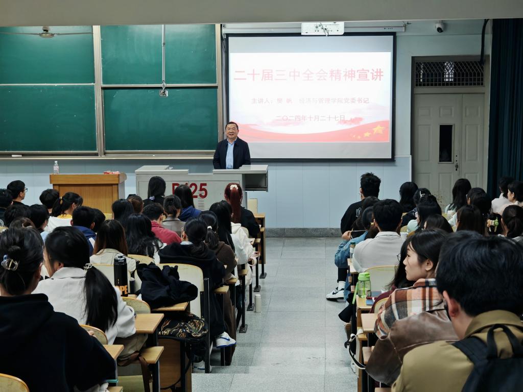 (通讯员 李云妮)为深入学习贯彻党的二十届三中全会精神,加强党员的集中学习教育,近日,350vip浦京集团官网开展党的二十届三中全会精神宣讲会,学院党委书记樊帆为全体学生党员作党的二十届三中全会精神宣讲报告。