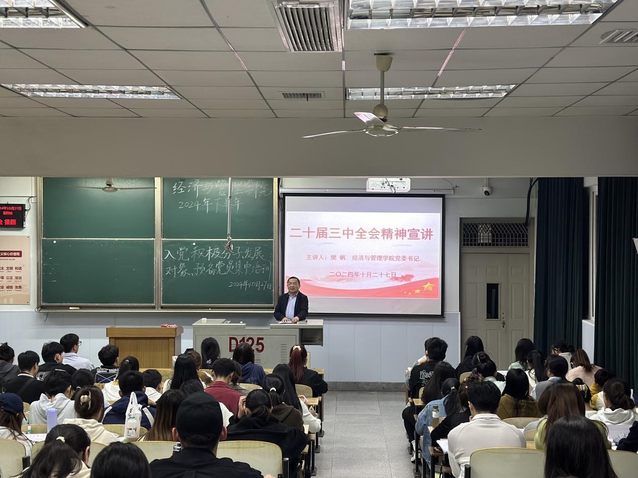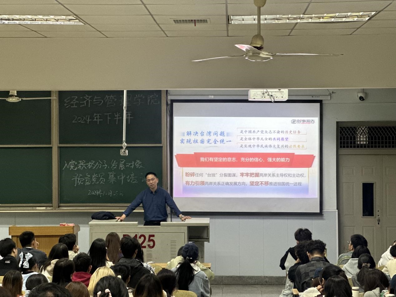 经管学院党委书记樊帆、党委副书记平先锋、辅导员贺雄分别以《党的二十届三中全会精神解读》《砥砺奋进促统一,铸就民族新荣光》《习近平的七年知青岁月》为主题开展集中授课,帮助入党积极分子、发展对象和预备党员深刻领悟“两个确立”的决定性意义,增强“四个意识”、坚定“四个自信”、做到“两个维护”,端正入党动机,确立为共产主义事业奋斗终身的信念。