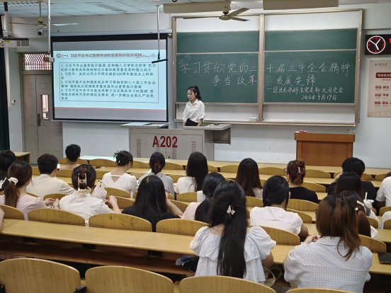 (通讯员 严允焓)学习贯彻党的二十届三中全会精神,争当改革发展先锋。2024年919日,经济系本科生党支部在东校区13教A202召开月主题党日活动。动由党支部支委郝颖丽主持。
