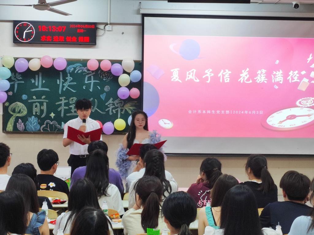会计系本科生党支部开展“夏风予信,花簇满径”主题毕业欢送会