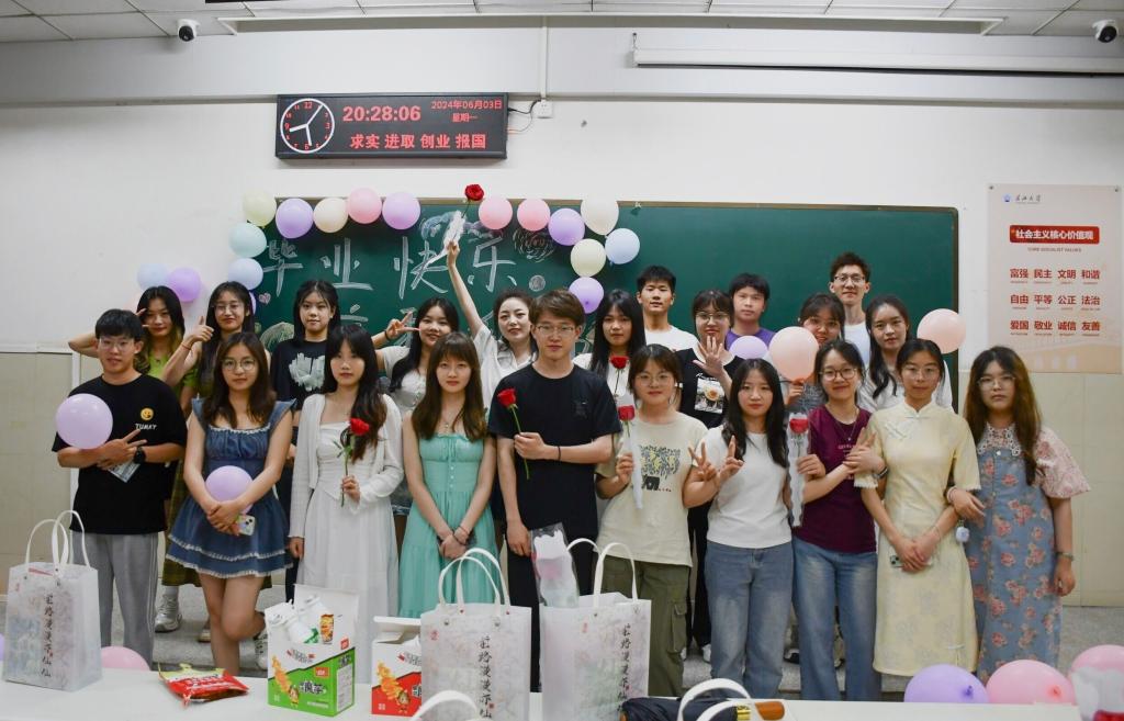 欢送会的最后,全体同志一起观看了毕业纪念视频—夏风予信,花簇满径。视频中记录了大学生活的点点滴滴、以及老师们和支部其他党员们对毕业生党员的美好祝愿。随着视频画面的渐渐淡出,会场的氛围也从欢声笑语转向依依不舍。尽管离别的情绪难以避免,但对于毕业生党员以及其他同志来说,这不仅意味着一个篇章的结束,更是崭新起点的重要标志。毕业生党员同志们即将承载着党支部全体同志的祝愿与期望,启程踏上人生的新旅程,去实现各自的梦想与抱负;其他同志则怀着对毕业生党员同志们的敬意与追随,继续书写会计系本科生党支部的光辉篇章。