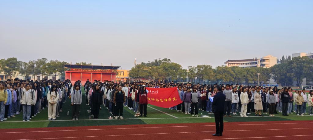 2023年10月23日早上7点,350vip浦京集团官网在西校区田径场举行秋季学期升旗仪式。学院党委副书记平先锋、新生辅导员及全体2023级本科生参加升旗仪式。