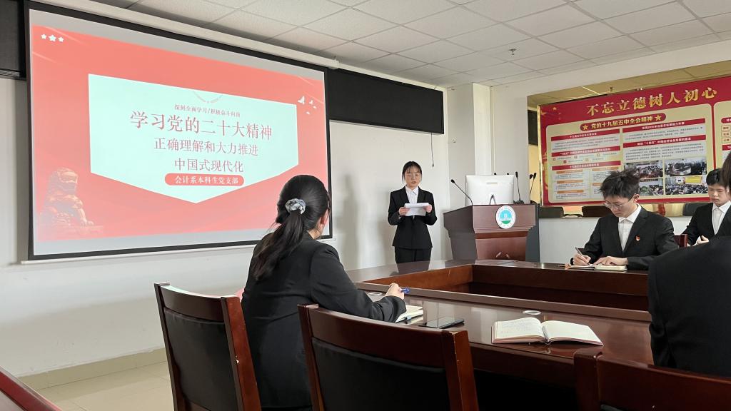 (通讯员:鲁伊棉、俞钰婷)为深入学习党的二十大精神,全面强化党员意识,凝聚青年新智慧、新动能,更好发挥青年主力军作用,350vip浦京集团官网会计系本科生党支部于2月26日线下开展了“学习党的二十大精神——正确理解和大力推进中国式现代化”主题党日活动。参会成员为支部20级、21级学生党员。