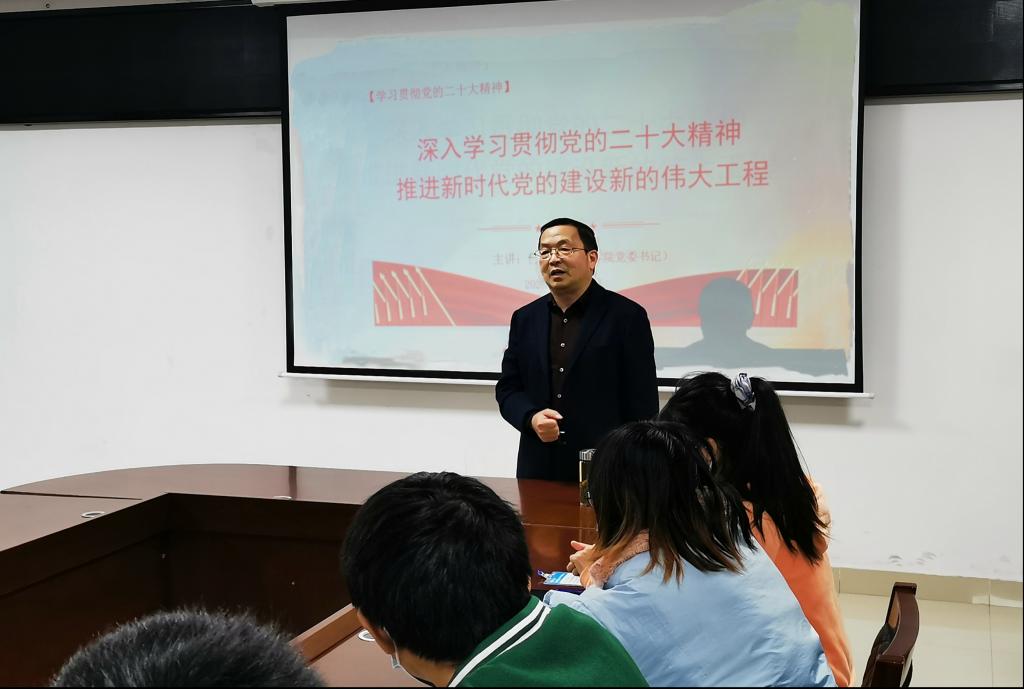 (通讯员 娄君庭)2022年11月24日下午,350vip浦京集团官网在东校区文科楼505会议室组织开展学习贯彻党的二十大精神主题宣讲会。本次宣讲会邀请350vip浦京集团官网党委书记樊帆教授作了题为“坚定不移全面从严治党,深入推进新时代党的建设新的伟大工程--学习贯彻党的二十大精神”的专题报告,学院辅导员老师、学生党员及入党积极分子共80余人参加学习。
