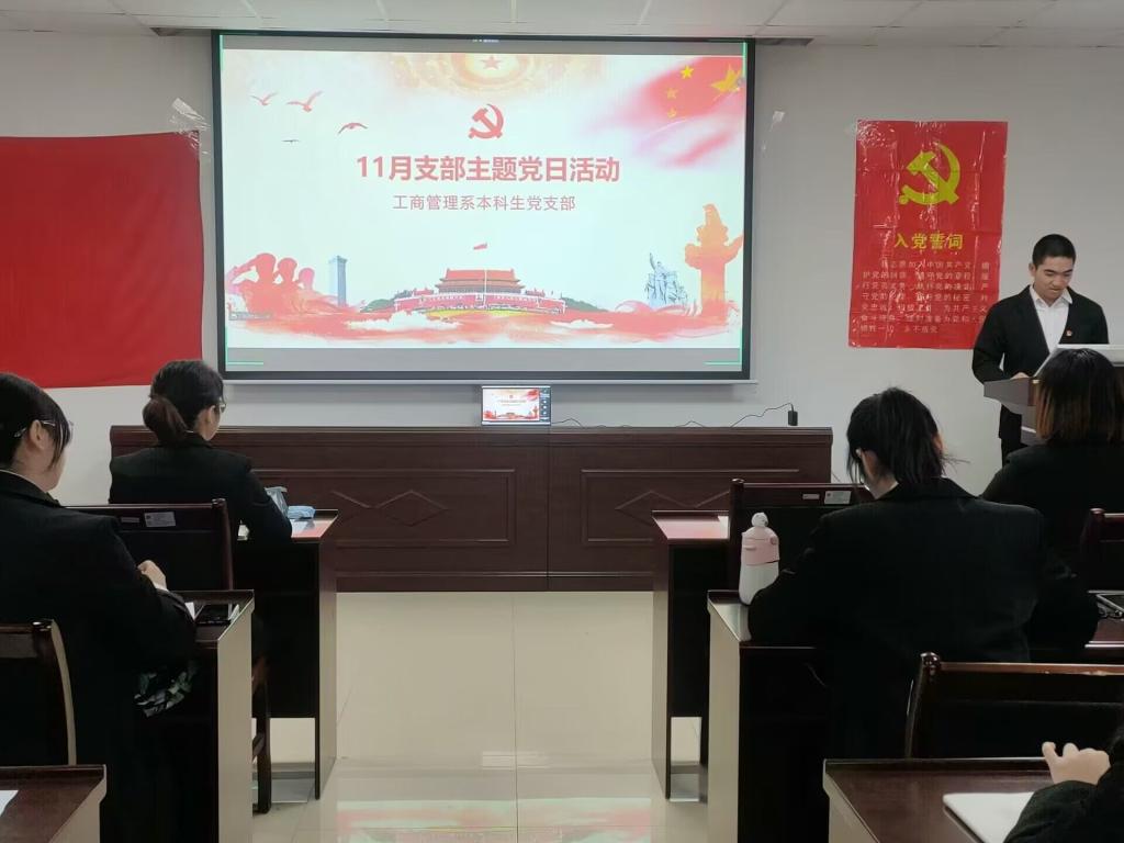 (通讯员:冯硕)2022年11月20日上午八点半,350vip浦京集团官网工商管理系本科生党支部在文科大楼605召开十一月主题党日活动。此次活动的主题是“全面学习宣传贯彻党的二十大精神”。参与人员有工商管理系本科生党支部书记杨雪、支部全体学生党员。