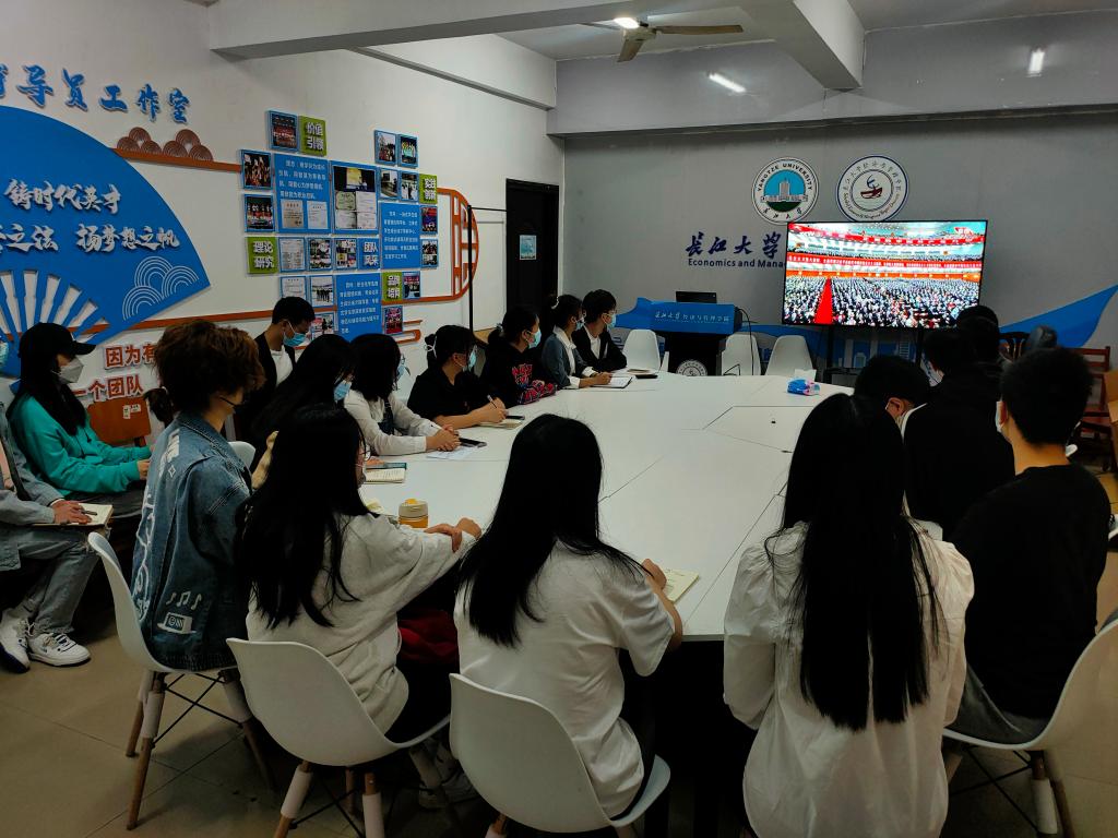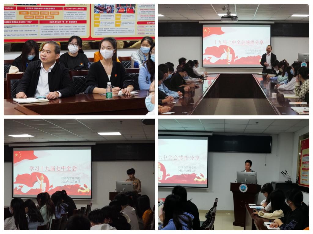10月16日上午9时,350vip浦京集团官网组织学生会干部、学生支部党员和本科生班级全面开展党的十九届七中全会精神的学习活动。本次学习会议主要采取线下集中学习和微信、腾讯会议的线上学习相结合的方式进行,学院党委副书记王中梅、辅导员娄君庭、黄承石、李镇等老师参加了此次会议。