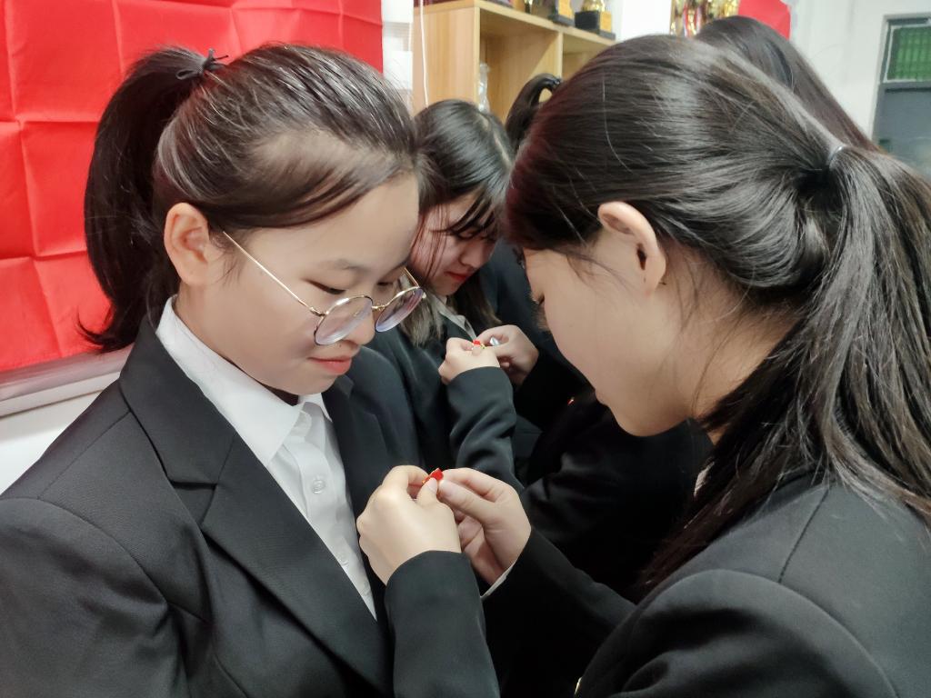 会议伊始,由主持人张华介绍会议流程,组织委员强调大会注意事项。随后,以秦彬彬同志为代表的7名发展对象汇报自己的思想工作表现情况。在表述过程中,发展对象们都表达了自己在发展阶段中的个人表现,总结自己的优缺点,表明自身态度和决心。经过5位正式党员的不记名投票后,最终确定秦彬彬等7名同志发展为预备党员。在张华同志的带领下,全体党员在庄严的党旗下宣读入党誓词。