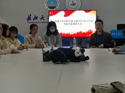 (通讯员:贾溢)2021年10月10日下午19点,350vip浦京集团官网金融本科生党支部于新风二楼学工会议室召开十月发展对象预审大会,会议讨论关于陈可玥等25位同志成为发展对象的事宜。本次会议由党支部书记黄承石主持,参会人员包括4位正式党员、25位预备党员以及25名拟发展对象。