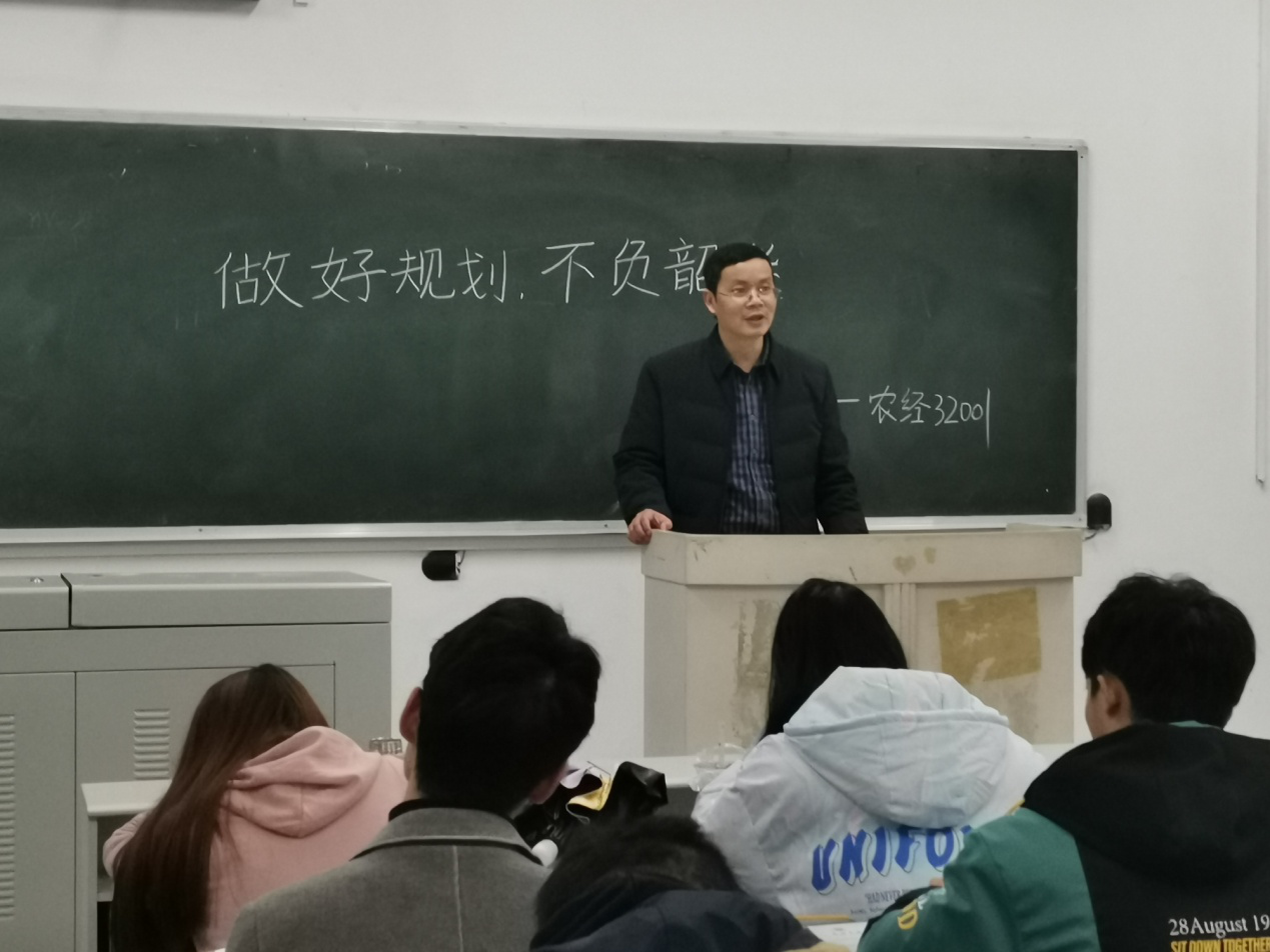 随后,何蒲明老师对同学们的学业乃至职业规划进行指导,提出“做好规划,不负韶华”的主题,希望同学们能够关注国家的形势与政策,在大学四年做好人生规划。何蒲明老师通过切身经历,以身边故事对同学们进行敦敦教诲,指出规划对大学生未来发展的重要性。“规划人生,展望未来。”只有做好人生规划,方不辜负好年华。