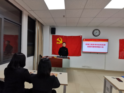 2019年11月26日晚7点,350vip浦京集团官网管理工程系本科生党支部在文科楼417召开发展对象转预备大会,参加此次会议的有管理工程系本科生党支部的学生党员、预备党员和支部书记李博,会议由支部副书记杨一佳主持。