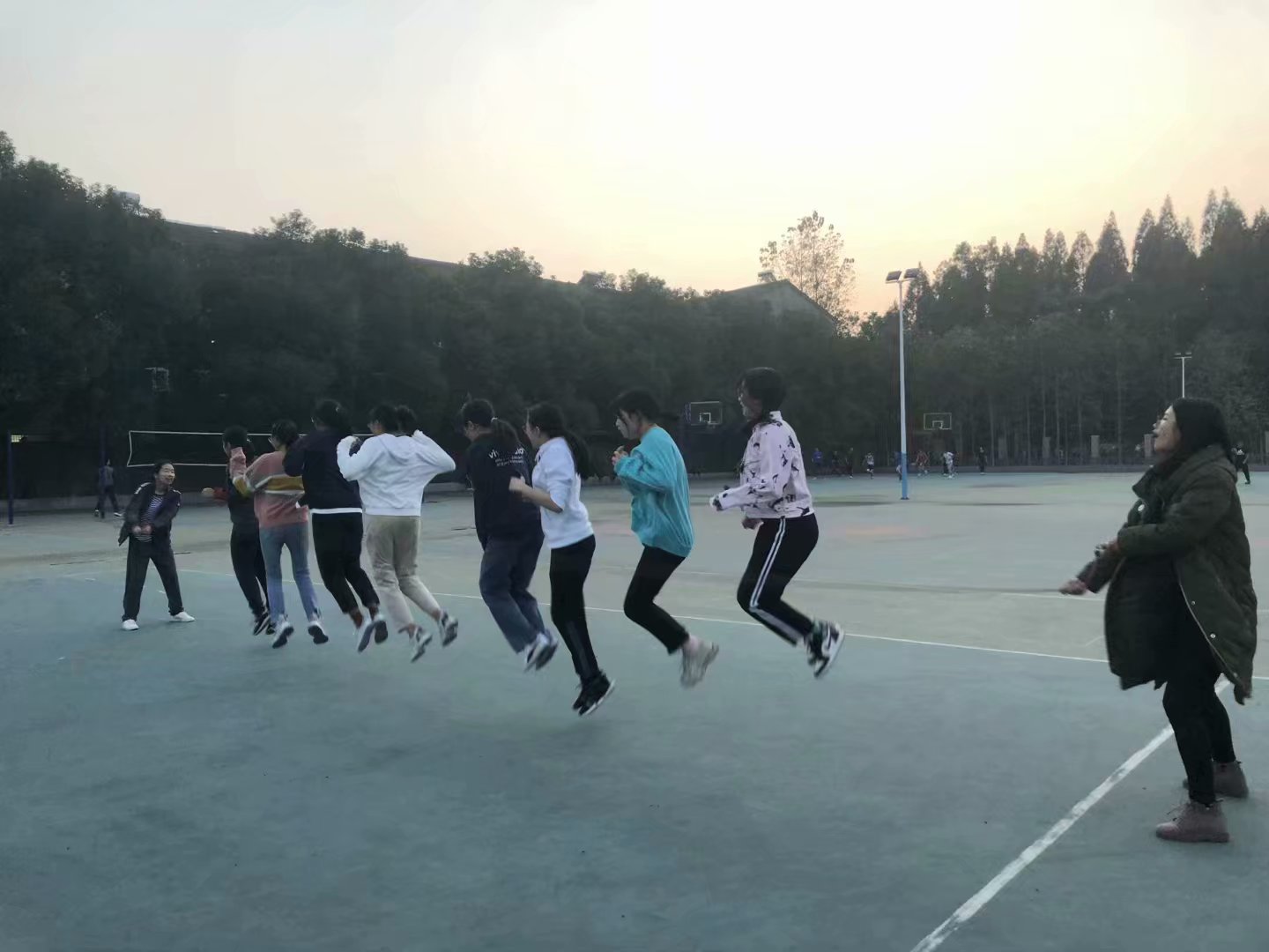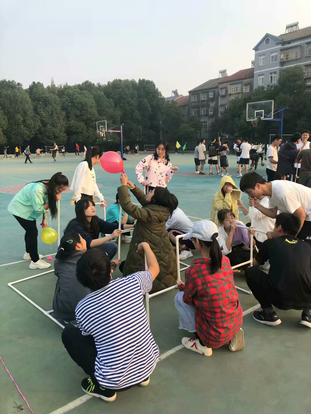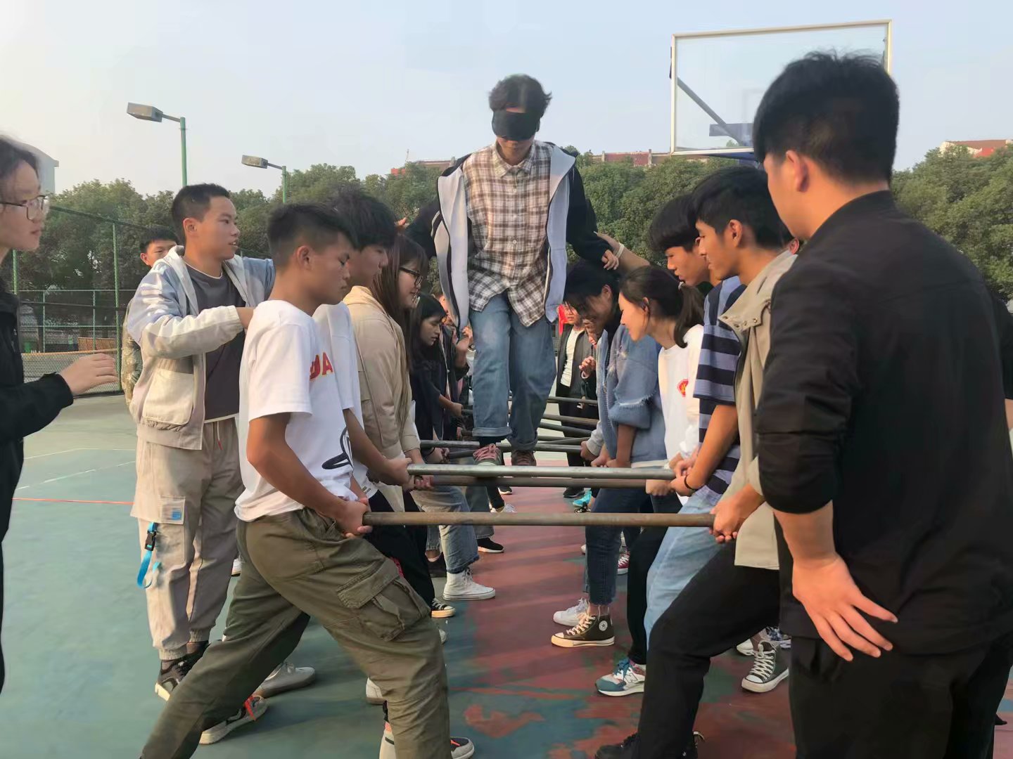 11月9日下午2点左右,各位同学在风华园球场集合完毕后,以班级为单位进行此次素质拓展活动,各班配有一名教练进行指导,辅导员桂凯丽老师全程参与了当天的活动,也同时见证了每个班级的成长。