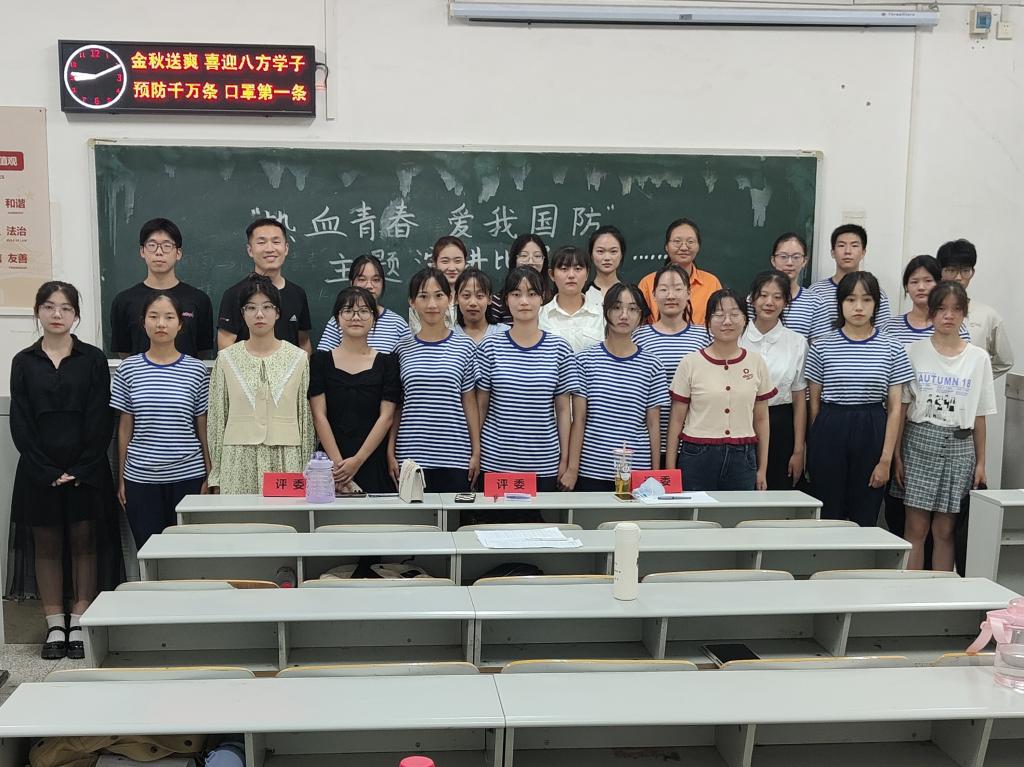 (通讯员 郭宇恒)2022年9月18日是“九一八”事变爆发91周年纪念日。为更好地普及国防知识、厚植家国情怀,350vip浦京集团官网于该日晚上7:00在七教106室举行“热血青春,爱我国防”演讲比赛决赛。评委由辅导员李博老师、方含之老师、学生会干部陈佳怡、卢俐宇、郝紫晶共同担任。