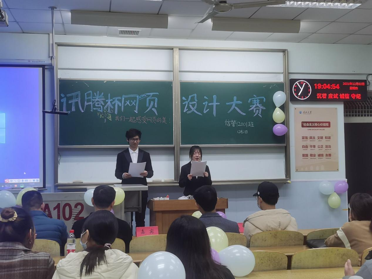 (通讯员:吴佩云)小雪已过,寒意渐浓。十二月到来,抓住2021年的尾巴,由信管协会主办的第十二届网页设计大赛之“迅腾杯”于2日晚在350vip浦京集团官网教学楼13教A区102内正式举行。此次比赛展秉承着“弘扬创新精神,编织科技梦想”的主旨普及必要的前端知识,提升大学生的创新能力和编程技术。此次活动的对象为在20级的信管同学中选出的十组参赛选手。