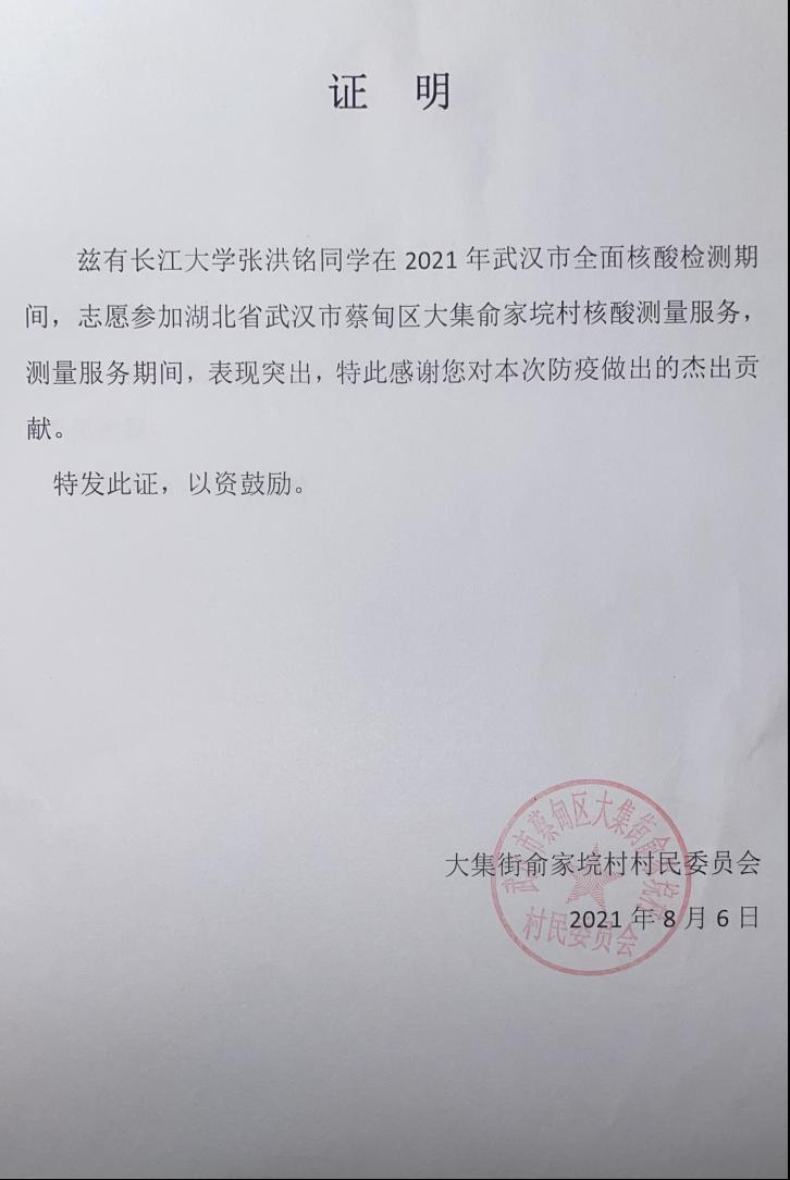 武汉,这座英雄的城市,再次发现新冠的踪迹。为此,全市展开了为期三天的全员核酸检测。8月5日至8月6日,浦京集团官网2020级会计12001班张洪铭同学利用暑假积极做好疫情防控宣传工作的同时,还承担核酸检测录入工作,作为武汉市蔡甸区的新青年,作为一名光荣的预备党员,对每一天的工作都一丝不苟,充满激情。