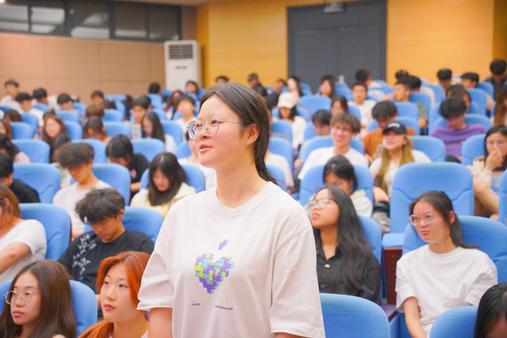 讲座中,闵娇讲师结合当前金融诈骗新形势,以"电信诈骗防范"、"校园贷风险警示"、"新型金融骗局识别"三大模块为主线,通过剖析匿名快递诈骗、AI换脸诈骗等典型案例,深入揭露犯罪分子的作案手法和心理操控技巧。针对校园贷陷阱,她重点讲解了高利贷背后的利滚利机制、个人信息泄露风险,并通过情景模拟、互动问答等形式,引导同学们识破"低门槛放款"、"注销校园贷"等常见话术套路。现场学生踊跃参与案例讨论,在问答环节中积极回答问题。