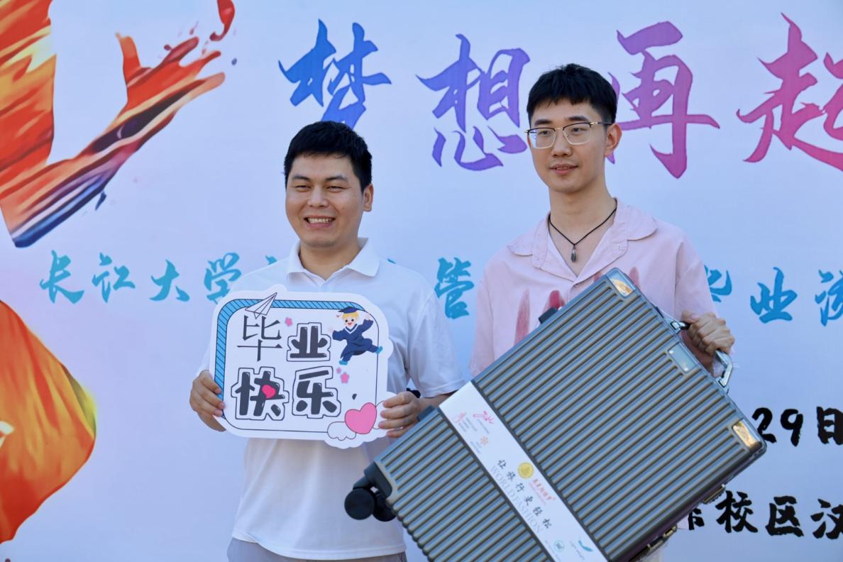 学院更是精心为毕业生准备了丰富的礼品,奖品兑换区前大家纷纷利用自己手中的奖券兑换心仪的奖品。这里有为毕业生准备的500元毕业旅行基金、26寸行李箱、荆州小胡鸭礼盒,还有各种零食、生活用品和小玩具纪念品,每一件都承载着大家共同的回忆与情感。