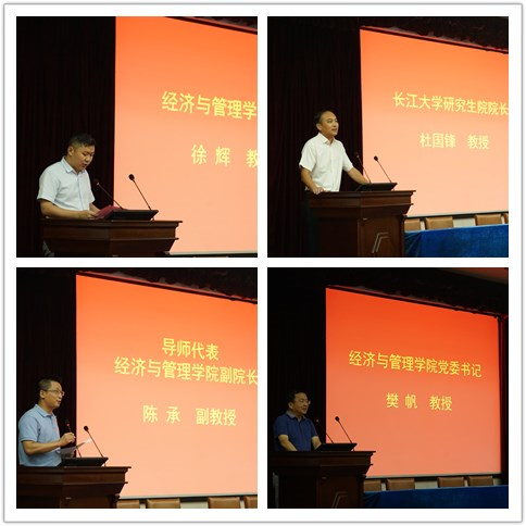 学院院长徐辉代表学院欢迎2019级新生,并介绍了校、院办学基本情况,他希望同学们能够成为德才兼备,具有创新意识、创造能力,且拥有国际化视野的优秀人才。研究生院院长杜国锋作服务承诺,他说研究生院一定会为学生的成长成才提供支持,同时他希望同学们志存高远、脚踏实地、主动探索、开拓视野。导师代表、学院副院长陈承为现在辛苦考上研究生的同学点赞,也希望在毕业典礼上为顺利毕业的同学点赞,更希望在未来为收获成功的同学点赞,他期盼着学生们在学院的培养下能够放飞梦想、快乐学习、成就未来。学院党委书记樊帆代表学院党委对新生提出要求,要不忘初心、勤学善思,做一名有远大追求、有强大执行力且与祖国同呼吸、共命运的优秀栋梁。