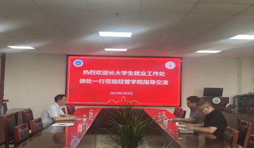 经管学院党委副书记平先锋对徐处长一行的到来表示诚挚欢迎,并详细介绍了经管学院在就业工作中所采取的一系列举措以及取得的阶段性成果。郭俊老师也就具体工作细节与就业处老师进行了深入交流。他们表示,将认真梳理和吸纳学生就业工作处提出的宝贵意见,进一步完善学院就业工作机制,创新就业指导服务模式,为毕业生提供更加精准、高效、贴心的就业服务。