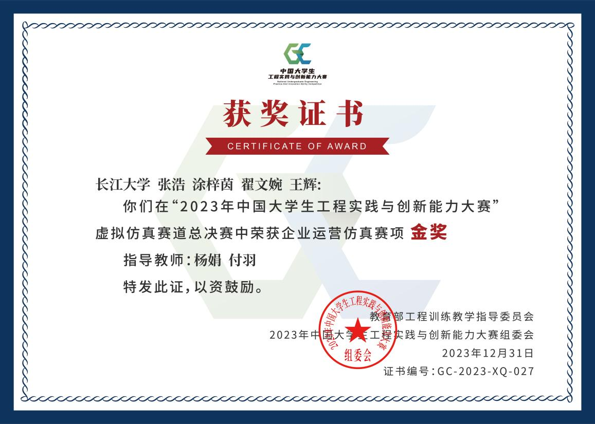 1,2023年中国大学生工程实践与创新能力大赛(金奖)