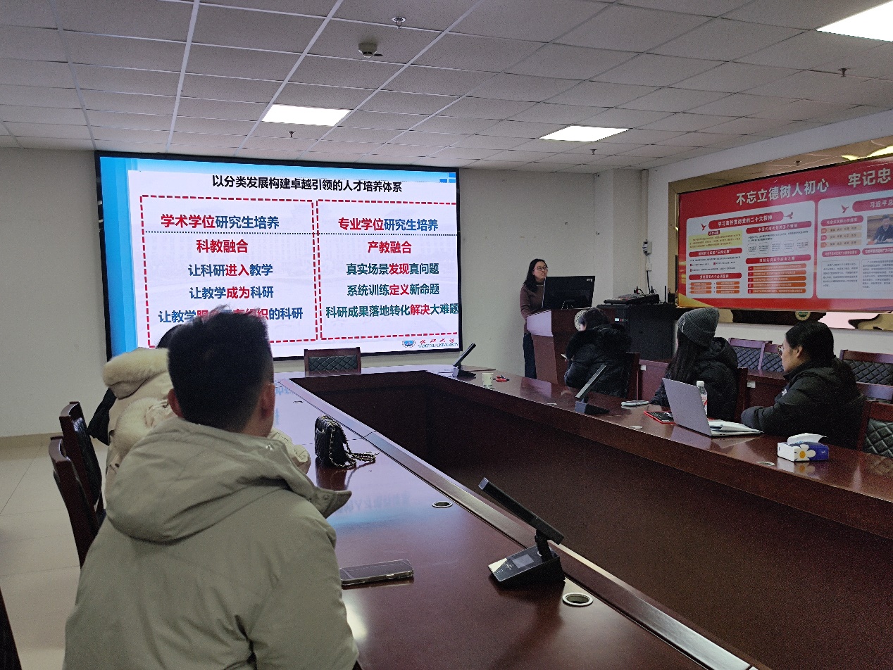 (通讯员:毛博)2024年12月25日晚上,350vip浦京集团官网求实导师学术沙龙第一期在文科楼 505 会议室成功举行。本次沙龙聚焦学术学位与专业学位分类发展政策,特邀吴雪莲教授担任主讲人,林龙飞主任等教师与农业硕士研究生参与。