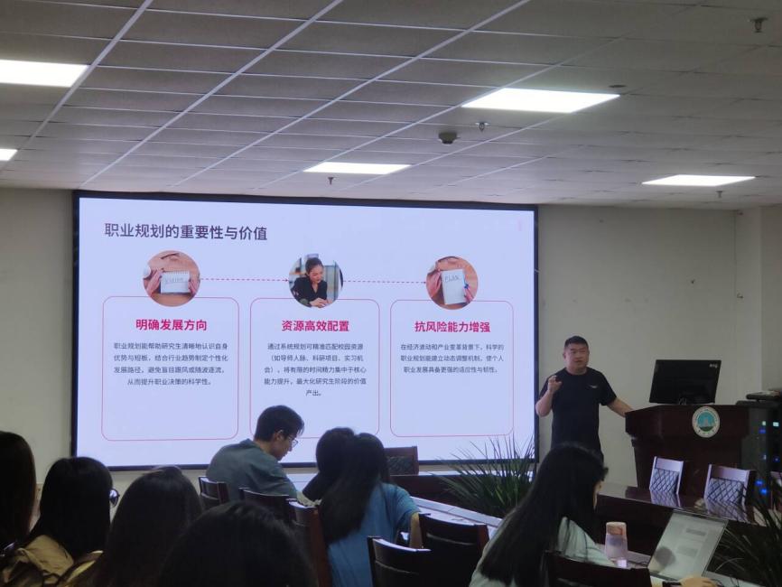 最后,谭俊华副教授以《研究生职业生涯规划》为题,讲授的主要内容包括研究生职业规划重要性,霍兰德职业心理选择,以及考博,公务员考试,银行体系竞聘,企业职业规划等,帮助学生合理规划研究生职业生涯。